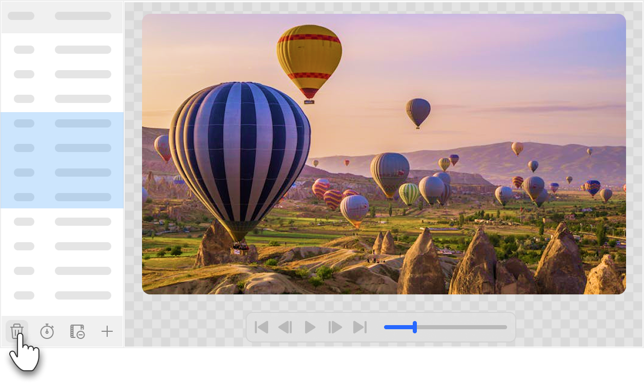 Select only the parts you need from a video, crop or resize with powerful editing features. You can also adjust the number of frames, playback time, and more all with ease.